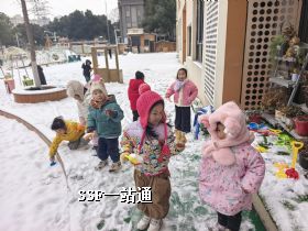 下雪啦!小班的宝贝们穿上厚厚的棉衣,来到雪地里撒欢儿~小手捧起软软的白雪,揉一揉、滚一滚,和小伙伴一起堆起圆滚滚的小雪人。有的给雪人安上黑纽扣眼睛,有的插上红红的胡萝卜鼻子,还有的戴上小围巾、小帽子,把雪人打扮得漂漂亮亮。雪地里笑声不断,每一片雪花都藏着童真,每一次合作都满是温暖,这是冬天里最可爱的快乐时光!