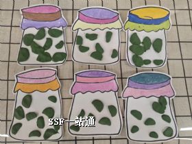 今天,宝贝们化身小小美食家,用粘土和彩纸制作了属于自己的“腊八蒜”。他们先给画好的玻璃瓶盖上涂上喜欢的颜色,有的是粉紫渐变,有的是黄蓝撞色,把瓶盖打扮得缤纷多彩。接着,把绿色的粘土揉成小小的蒜瓣形状,一片一片贴进“玻璃瓶”里,不一会儿,就装满了满满一罐翠绿的“腊八蒜”。这不仅是一次好玩的手工,更是一次有趣的节气体验。宝贝们在揉一揉、贴一贴的过程中,认…