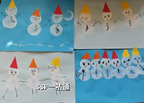 今天的美术课上,宝贝们用海绵印章和彩纸,创作出了一个个可爱的小雪人。他们先用海绵蘸上白色颜料,轻轻印出圆圆的雪人身子,再贴上彩色的小三角当帽子,最后用黑笔添上眼睛、鼻子和小手。有的小雪人戴着黄帽子,有的戴着红帽子,还有的手拉手排排站,每一个都带着独特的童趣。宝贝们专注的小脸上满是认真,在创作中感受冬天的美好,用小手画出了属于自己的冬日童话。