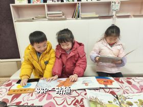 他们在图书馆中认真看书,还有的孩子在进行手偶讲故事呢!