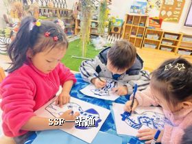大二班美术活动中,小朋友们手执画笔,蘸取蓝料,在素胚上勾勒青花纹样。一笔一画认真描摹,传统古韵与童真创意碰撞,尽显传统文化启蒙的乐趣。